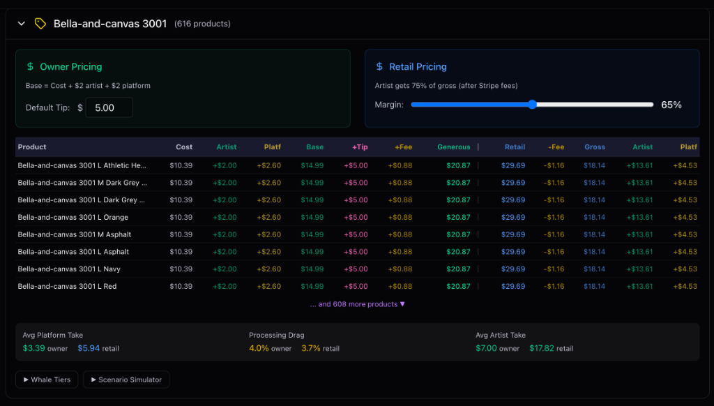 Worldwide merch fulfillment via Gelato. Cost Plus pricing for owners. Zero inventory.